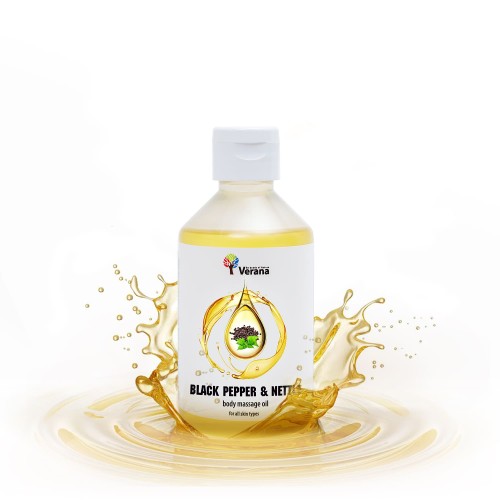 Verana Black Pepper and Nettle Body Massage Oil is designed for effective body care and is suitable for various massage types and techniques.