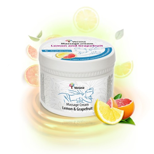Massage cream Verana «Lemon and Grapefruit» is designed for effective body care, as well as for various types and techniques of massage and SPA procedures for the body.