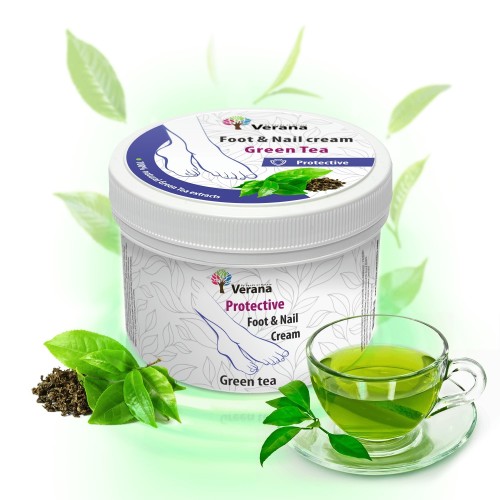 Protective foot and nail cream Verana "Green Tea" is designed for gentle care of the skin of the feet and nails, as well as for professional care of the skin of the feet during pedicure procedures and SPA-procedures for foot care.